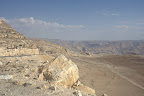 Nos dormimos y nos despierta nuestro amable taxista cuando para el coche delante de Wadi Mujib, una enorme garganta (más de 70 km) prácticamente desértica que resulta impresionante. La naturaleza es capaz de crear cosas preciosas tanto con agua como con la falta de ella. Tiene más de un kilómetro de profundidad y cuatro de anchura, y cruzarlo nos llevó un rato, casi 20 km en coche.