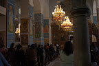 Ya en Madaba vamos a por el mapa-mosaico. Como es domingo, resulta que hay misa cuando llegamos. Y cuando hay misa parece que el mosaico se tapa con alfombras para colocar los bancos en los que se sientan los fieles. La iglesia en cuestión es la de San Jorge, cristiana ortodoxa griega (de las que tienen unas misas de horas). Según pone por allí hasta las 10:30 no se verá el mosaico.